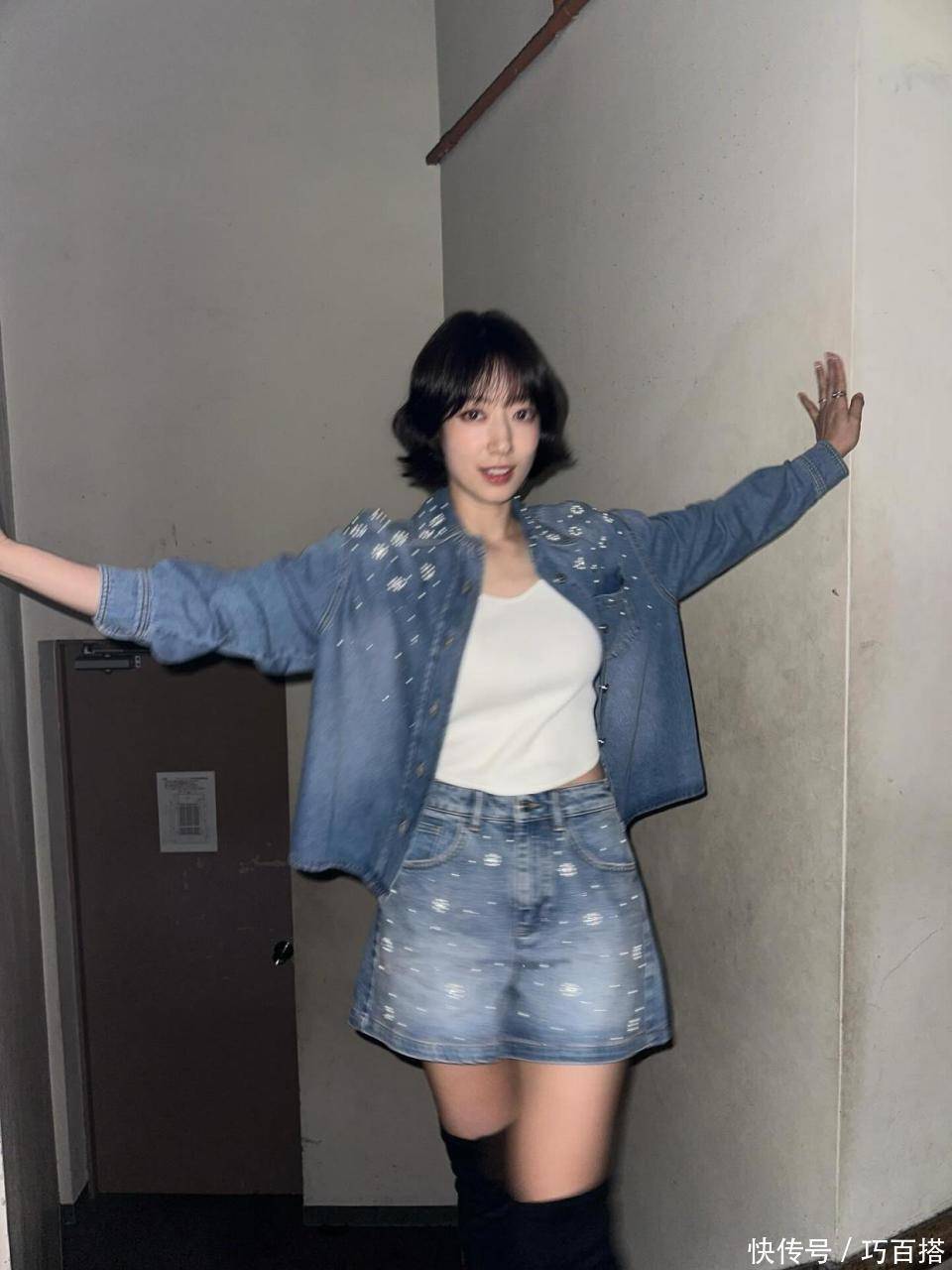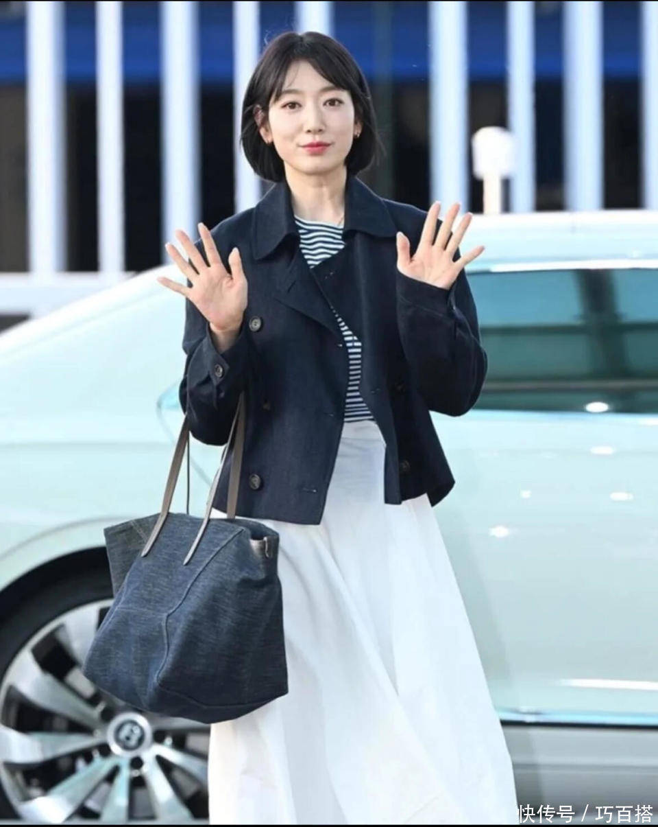 出门工作时的朴信惠状态也很棒,原图直出情况下自带明星光环,简单基础单品上身和短发发型形成呼应,清爽利落形象让人不敢相信这是一位三岁孩子的妈妈。